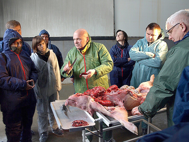 Ćwiczenia rozpoczęły się konferencją, podczas której przedstawiciele nauki przekazali uczestnikom aktualne informacje dotyczące afrykańskiego pomoru świń. Następnie, na podstawie przygotowanego scenariusza ćwiczeń symulacyjnych, zarówno Inspekcja Weterynaryjna jak i służby wspomagające omówiły procedury i opracowały dokumentację w oparciu o plan gotowości zwalczania afrykańskiego pomoru świń oraz o obowiązujące przepisy. W części praktycznej, która odbyła się na terenie gospodarstwa „FARMER” we wsi Mażucie Straż Pożarna, Policja oraz przedstawiciele Polskiego Stowarzyszenia pracowników DDD zaprezentowały m.in. sposób zabezpieczenia oraz dezynfekcji zarówno ogniska choroby jaki i wyznaczonego obszaru zapowietrzonego. Ponadto, Inspekcja Weterynaryjna, w Zbiornicy Padliny w Olecku, miała możliwość doskonalenia techniki przeprowadzania sekcji świń oraz pobierania próbek do badań laboratoryjnych.